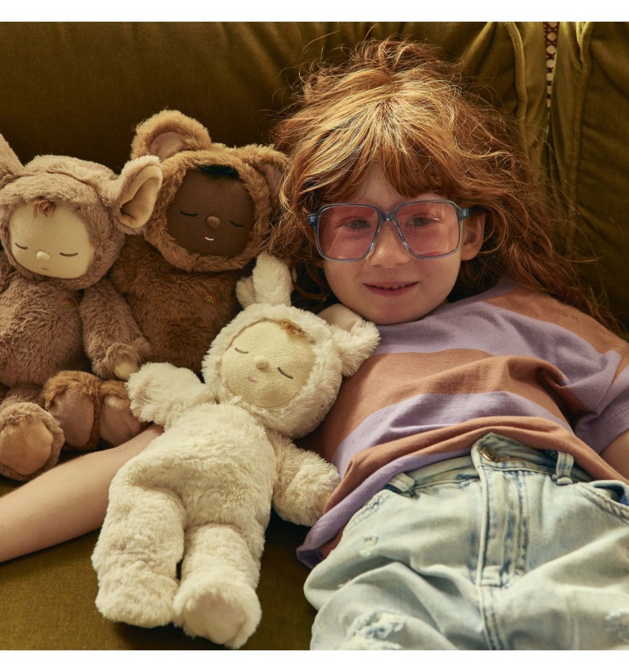 Regardez qui pointe le bout de son nez tout rond : se sont les Cozy Dinkum, ces adorables poupées de chiffon aux combinaisons d'animaux !
