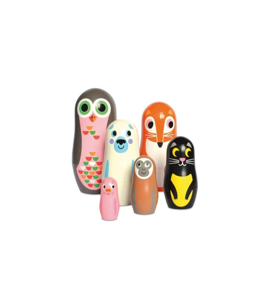 Des poupées gigognes revisitées! Cet ensemble d'animaux conçus par l'illustratrice Ingela Arrenhius s'emboîtent en effet les uns dans les autres. A la fois décoratifs et ludiques ces petits animaux en séduiront plus d'un par leurs couleurs et leurs dessins très reconnaissables de cette artiste suédoise qui a le vent en poupe.