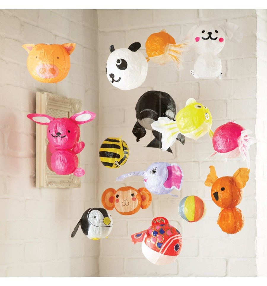 C'est magique ce lampion de tradition japonaise. Les Kami fusen sont des petits ballons colorés en papier en forme d'animal pour la plupart du temps. Ils se présentent tout plat et d'un souffle enchanteur ils se gonflent pour prendre différentes formes (poisson, panda, pingouin, pastèque, éléphant, tigre). A suspendre comme un mobile, à mettre en guirlande, il décore avec poésie la chambre des enfants en plus il paraît que les Kami fusen portent bonheur... Si vous faites une démonstration devant votre enfant, il tombera à coup sûr sous le charme de votre tour de magie!