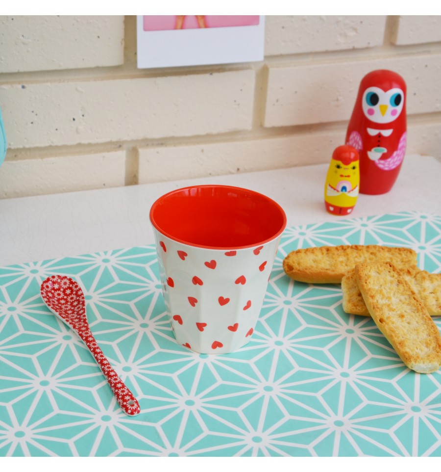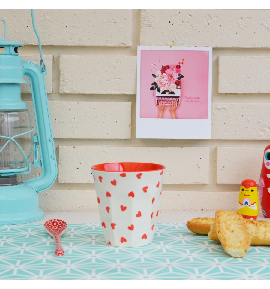 Un joli verre parsemé de coeurs rouges qui vous mettra de bonne humeur dès le matin, avec votre jus de fruits.