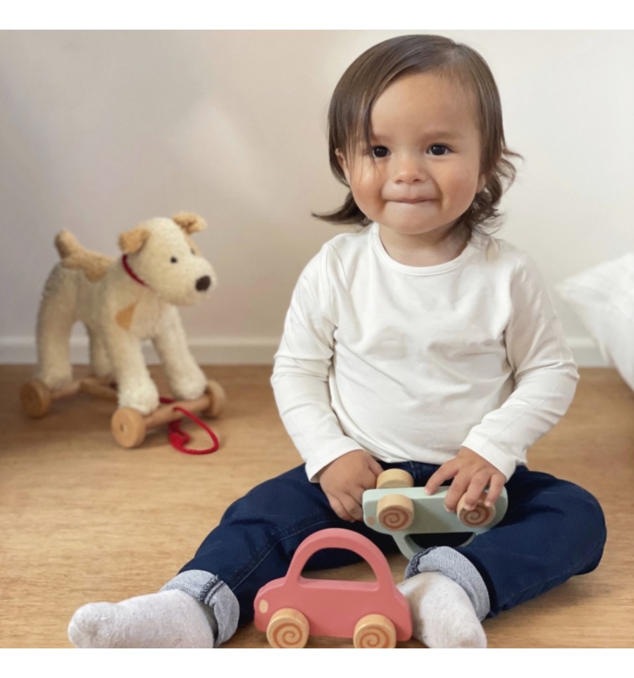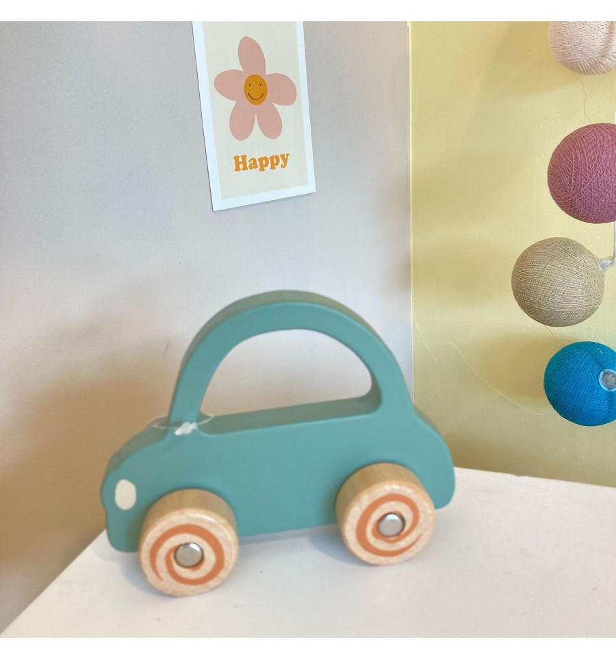 Avec cette jolie voiture en bois vert sapin, imaginée par Egmont Toys, vos enfants vont pouvoir jouer des heures.