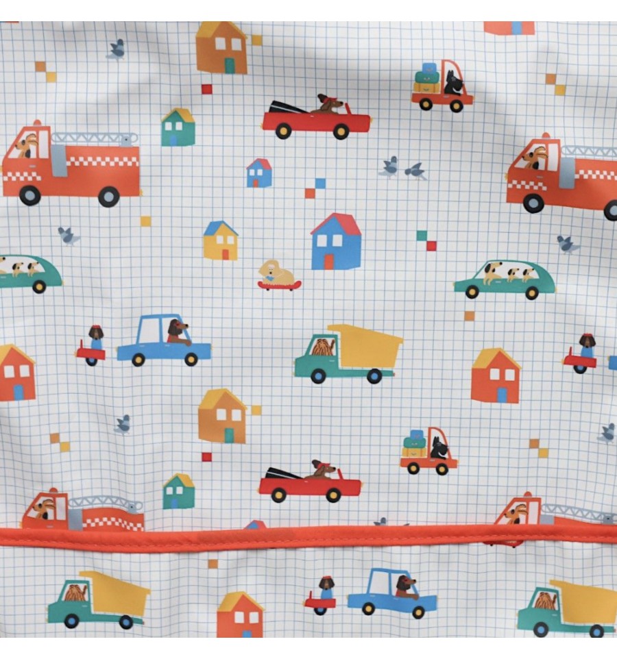 On adore : l'imprimé méga fun avec des véhicules sur un fond à carreaux! si Rigolo !