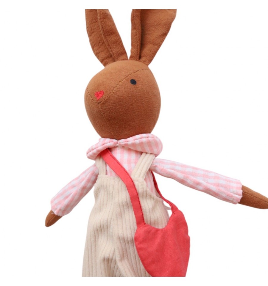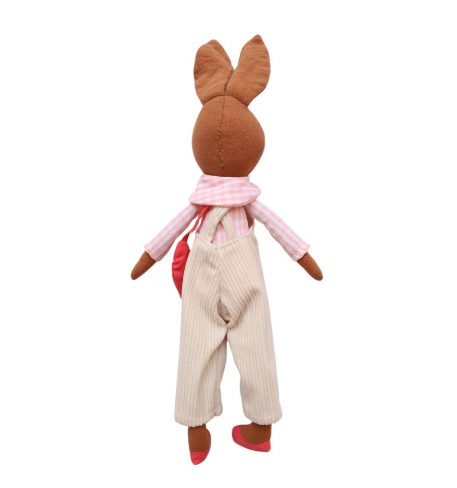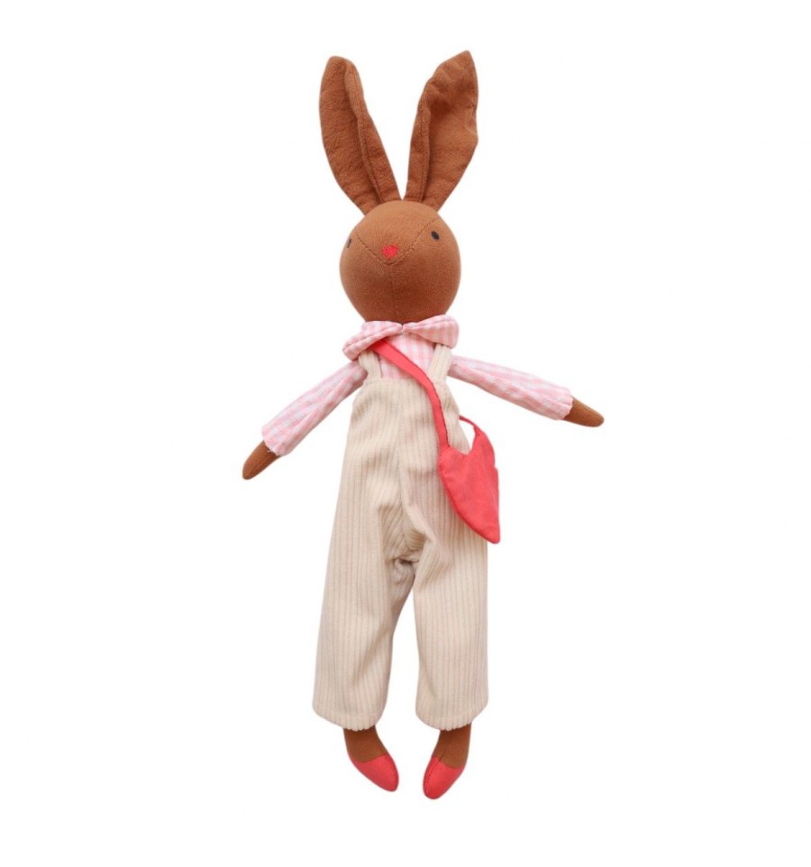 Cet adorable lapin aux couleurs tendres pourra accompagner votre enfant dans toutes ses aventures.