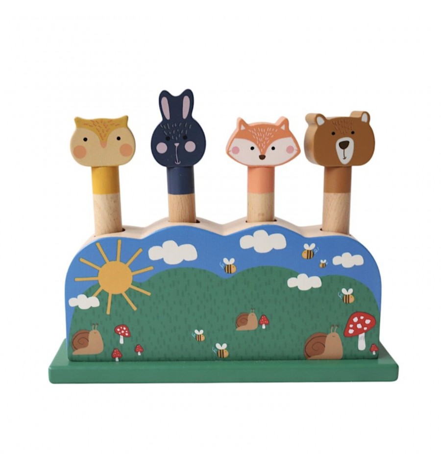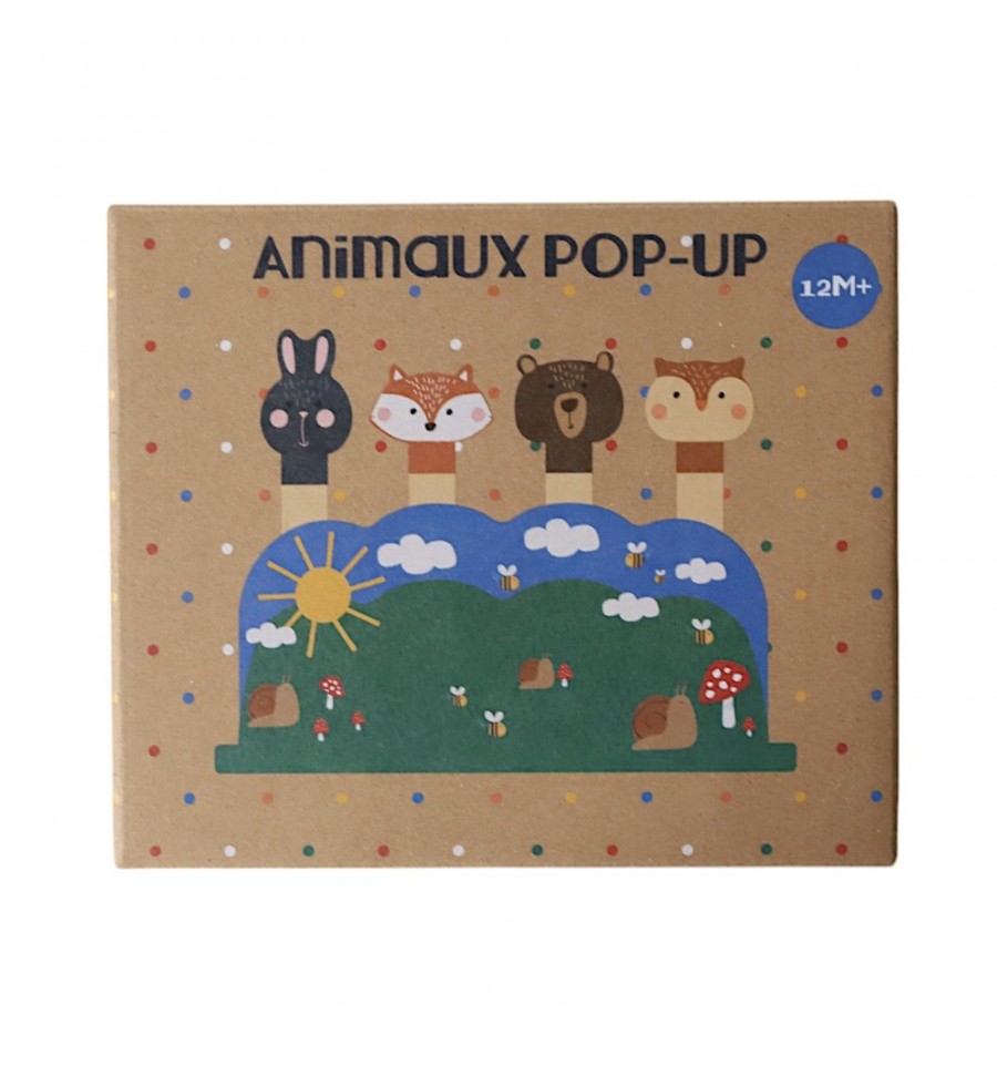 Les 4 "animaux-tiges" (renard, ours, lapin et chouette) sont pop-up, c'est à dire qu'il faut appuyer dessus et ils sauteront de leurs emplacements ! Trop marrant !