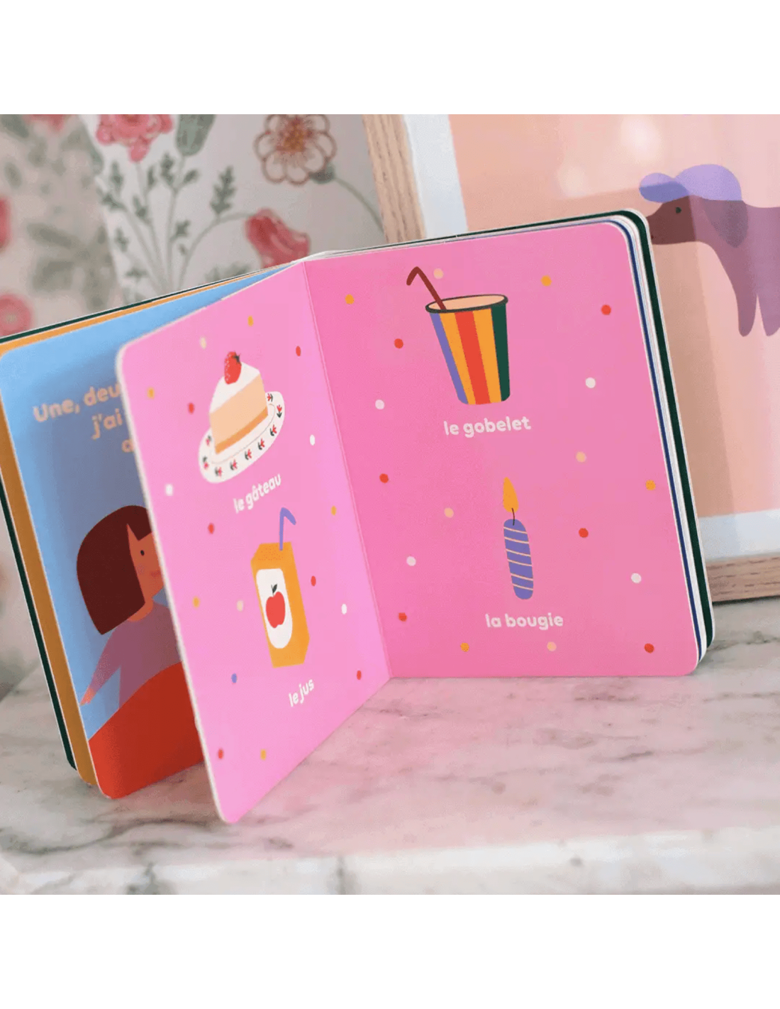 Cet album "Mon anniversaire" déploie sur 10 doubles pages des illustrations légendées du quotidien de bébé (le gâteau, le cadeau, le ballon, la bougie…), le tout ponctué de petites phrases affectives.