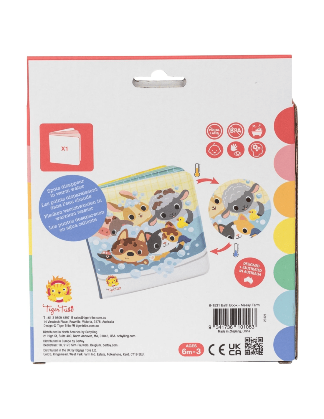 Il suffit de plonger son livre dans l'eau chaude pour voir la "saleté" disparaître comme par magie ! Une fois l'eau refroidie, les dessins reprennent leur forme initiale, pour des heures de jeu et de découverte.