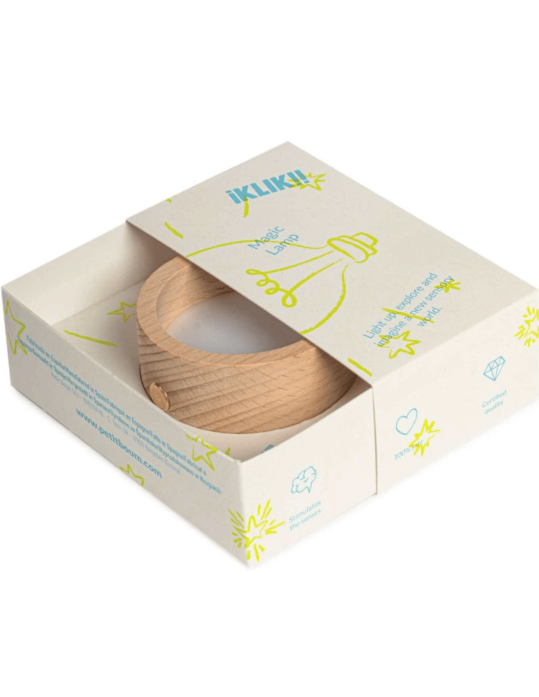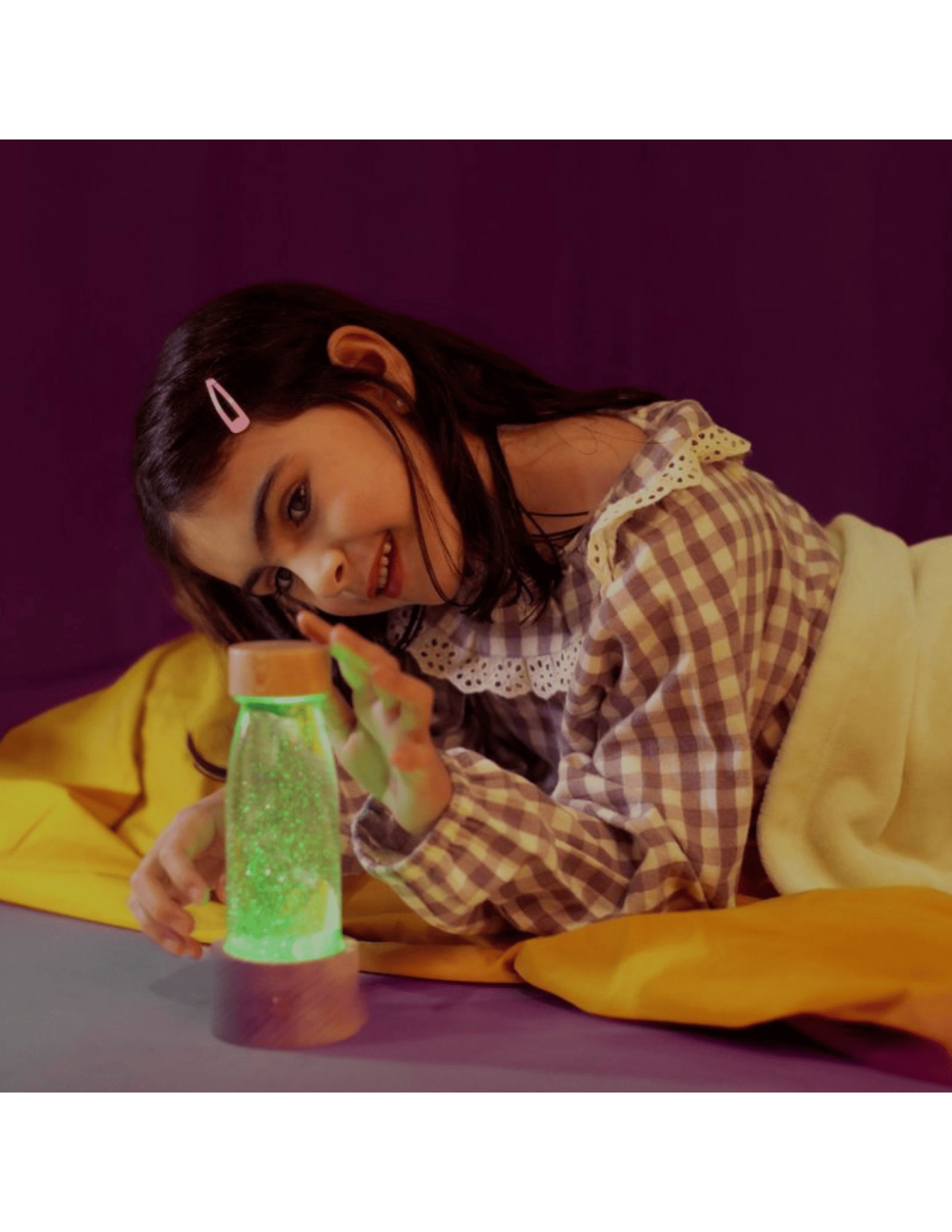 Petit Boum a imaginé ce socle en bois pour transformer n'importe quelle bouteille sensorielle de la gamme Float Petit Boum en véritable lampe magique.