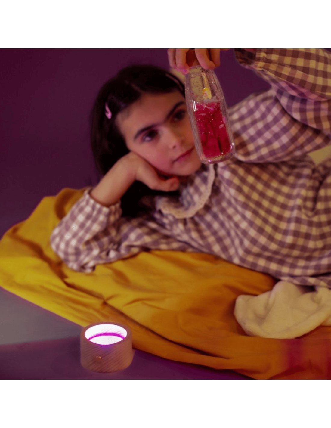 Ce socle magique transforme chaque bouteille sensorielle Petit Boum en véritable lampe.