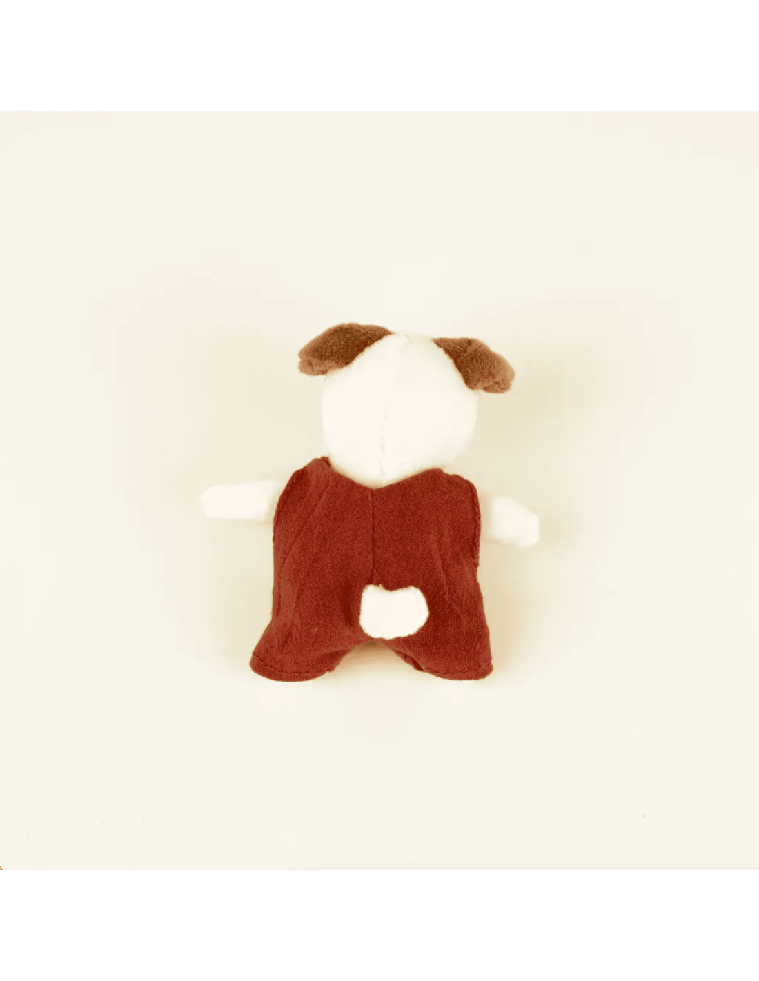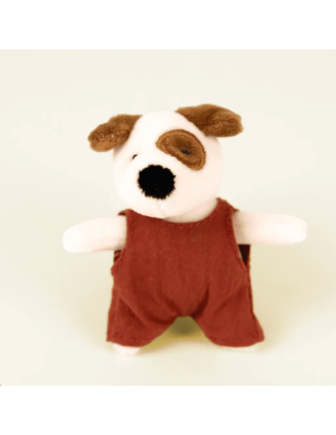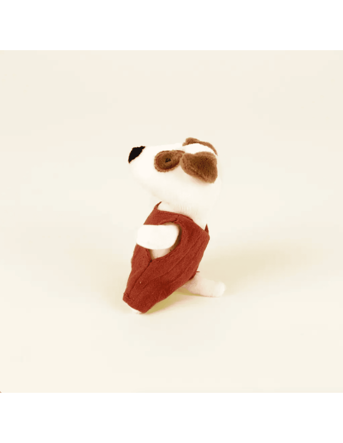 Adorable, ce chien tout doux avec son oeil tacheté porte une combinaison couleur brique. Il est prêt à vous suivre dans toutes vos aventures.
