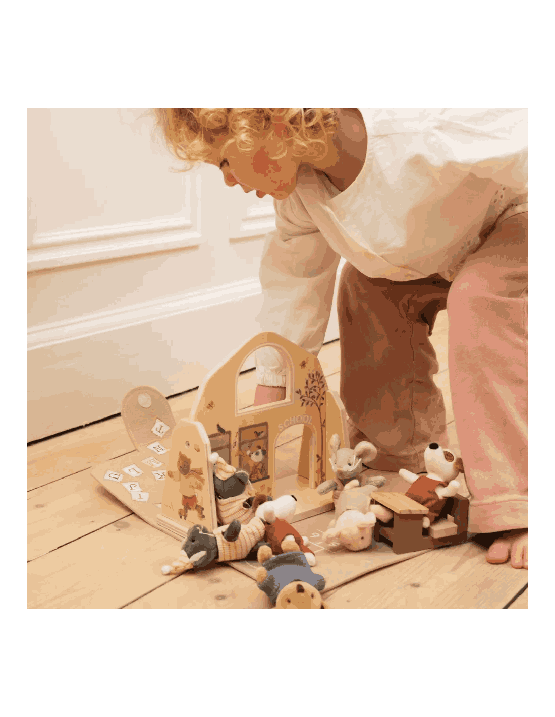 Imaginée par Egmont Toys, cette jolie mallette qui se transforme en école comprend :