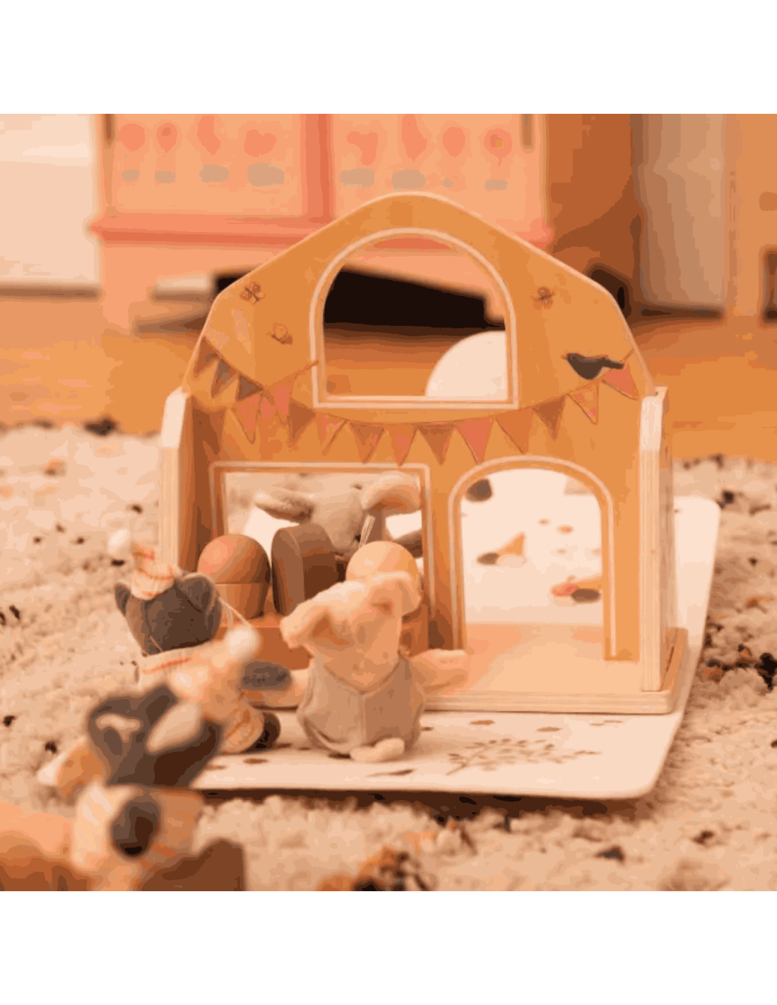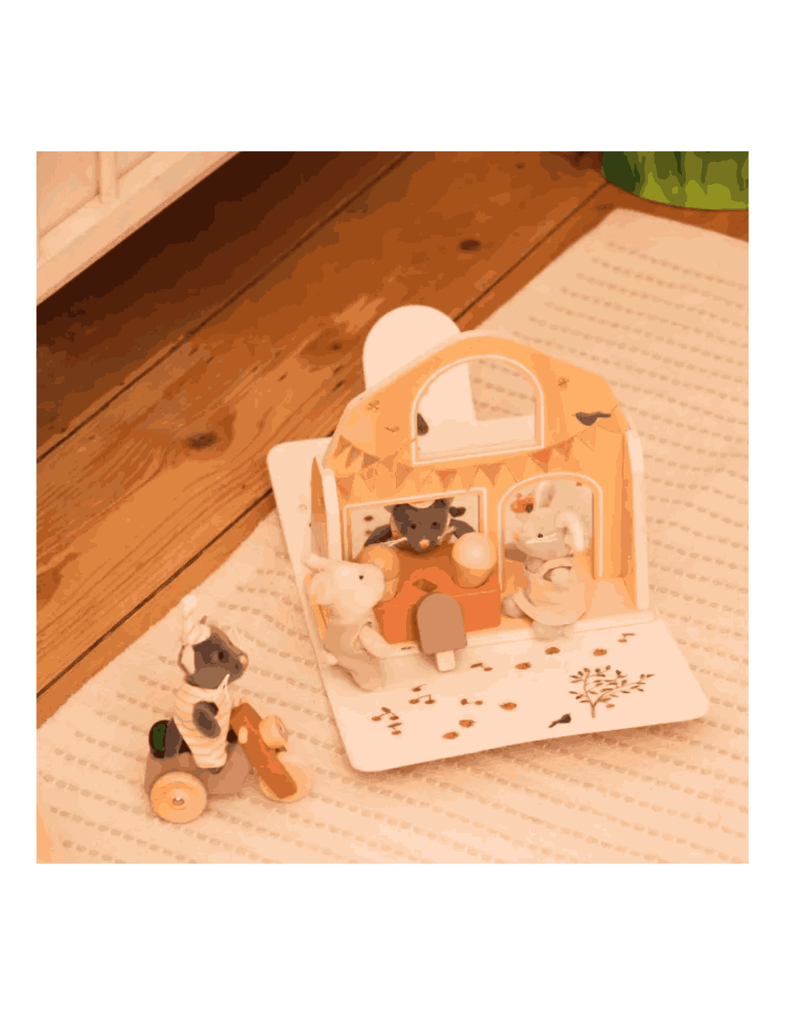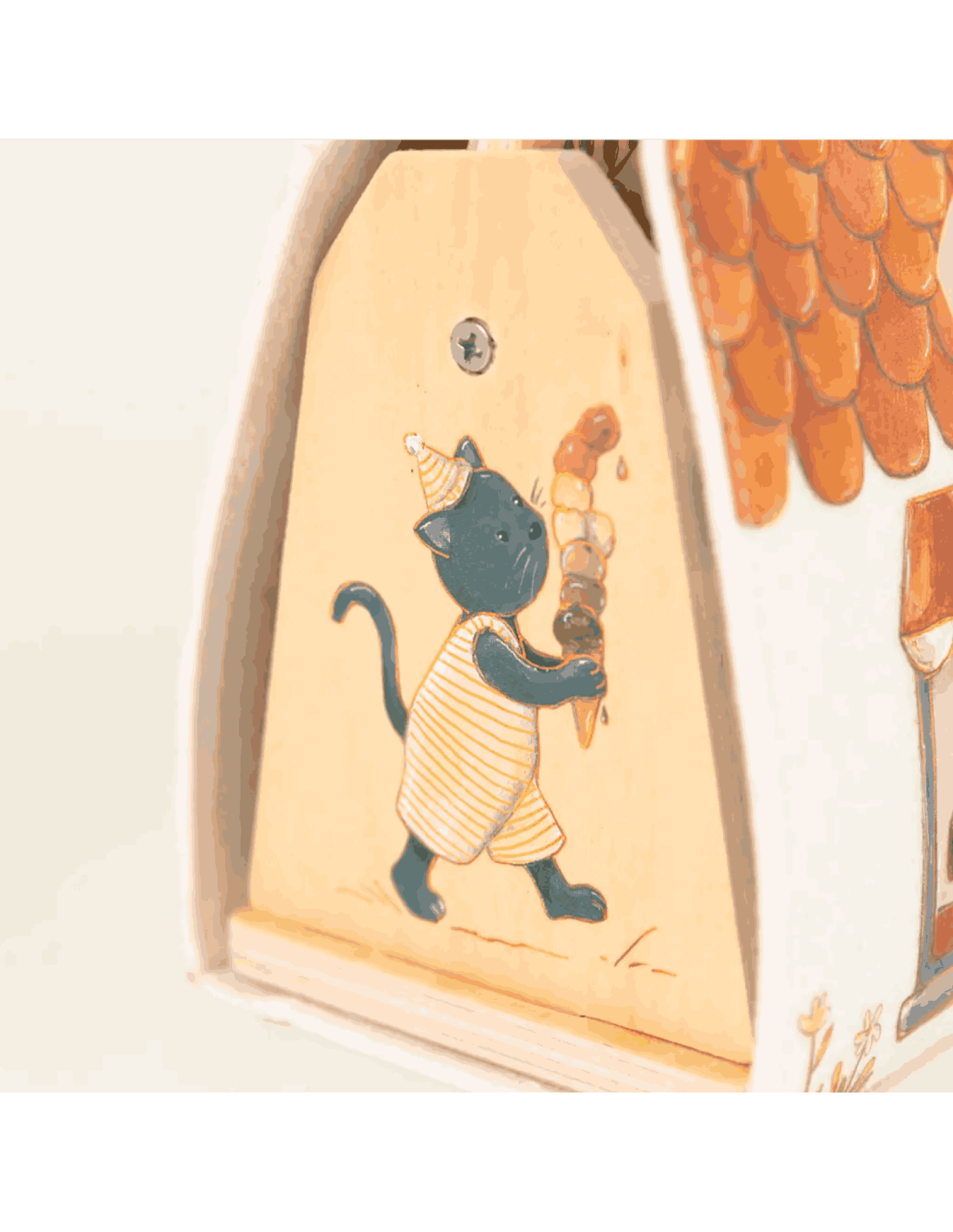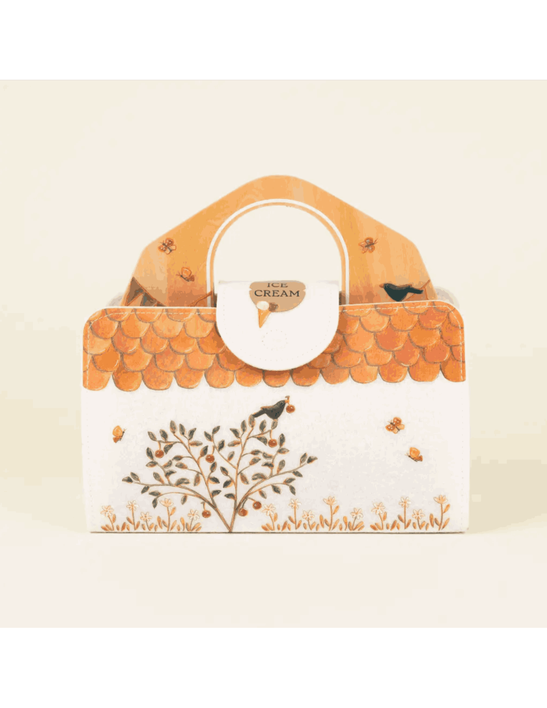 Cette adorable mallette s'ouvre et se transforme en marchand de glace avec un comptoir en bois et Agathe, la petite souris en peluche.