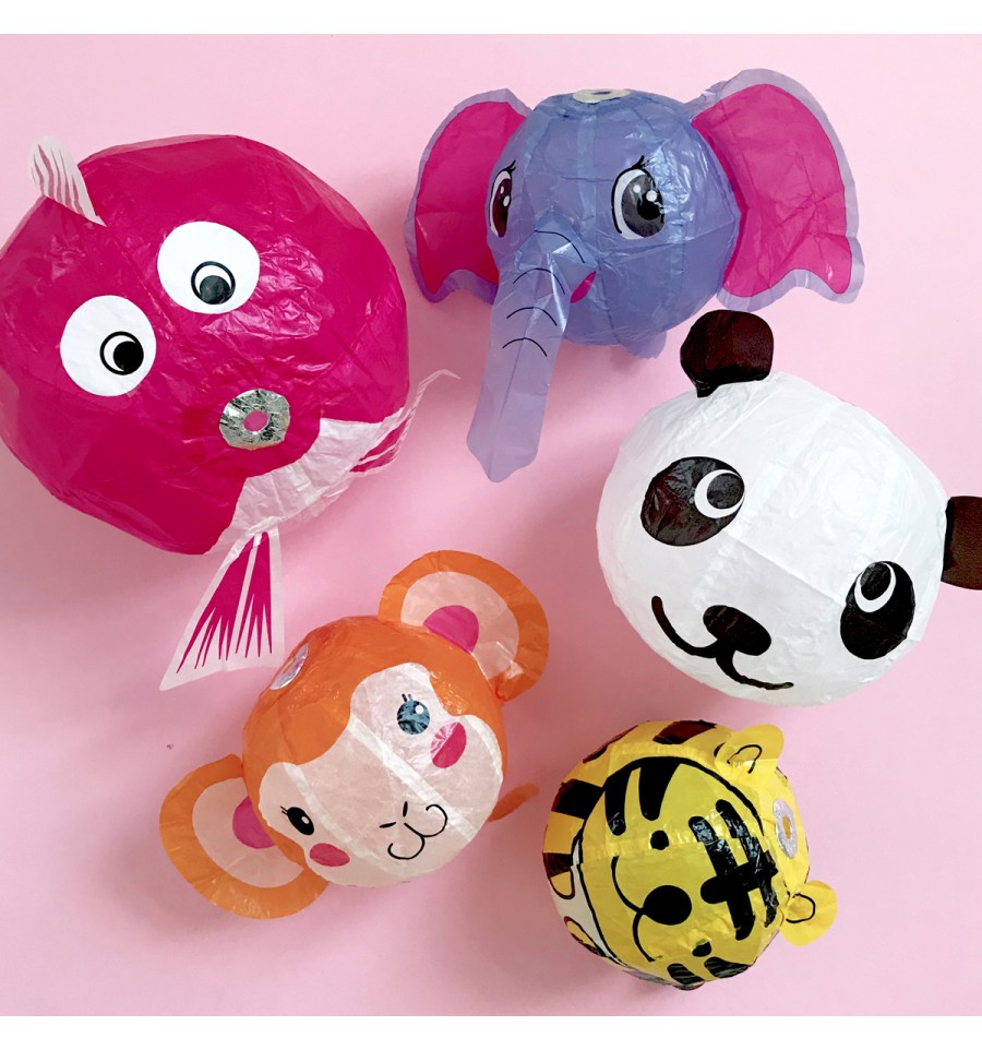 5 ballons japonais animaux en papier à gonfler soit à suspendre soit pour jouer. Le kami fusen est un classique japonais pour les enfants.