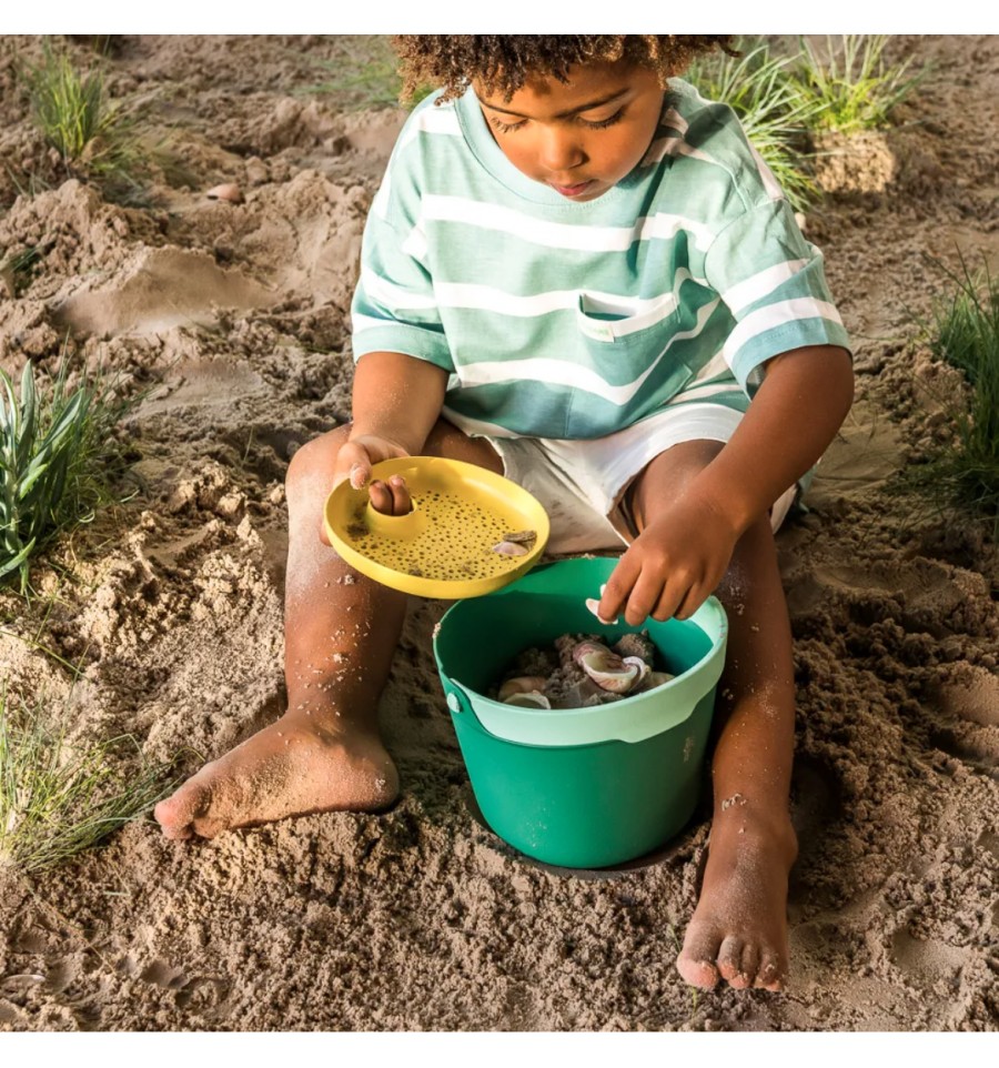 Grâce à son tamis amovible et sa anse clipsable, les enfants pourront construire de véritables forteresses de sable et partir à la chasse au trésor sans problème : ils pourront même ramasser et nettoyer des coquillages en un tour de main.