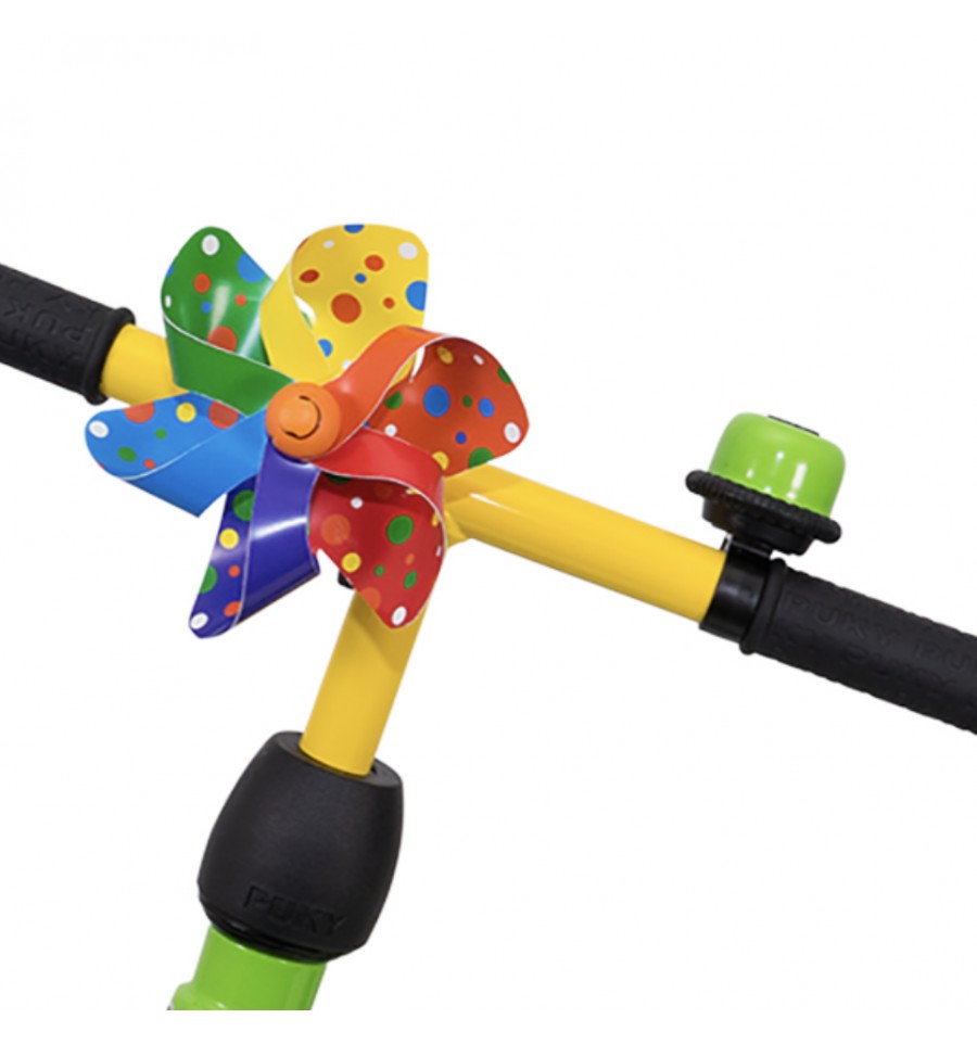 Idéal pour customiser un vélo, une trottinette ou tout autre objet à roues, ce moulin à vent multicolore s'accroche et se décroche facilement sur le guidon et tourne avec le vent !