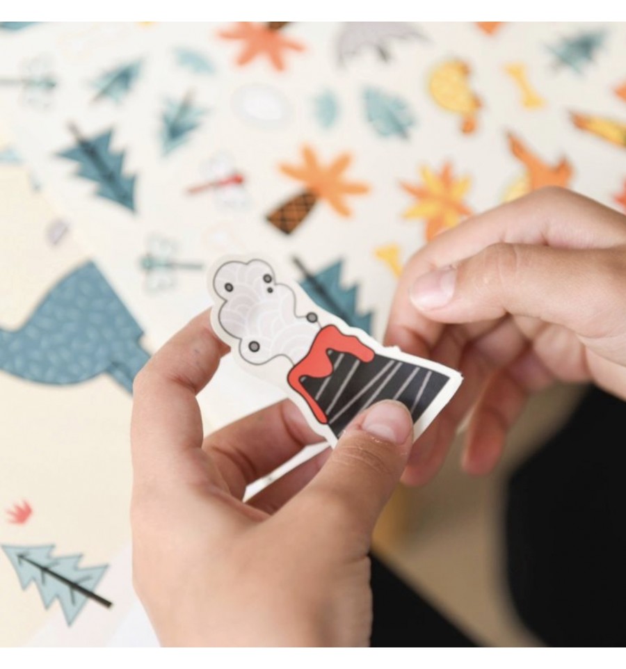 La pochette contient un grand poster (48 x 68 cm) sur lequel les enfants vont adorer coller leurs très nombreux autocollants où bon leur semble.