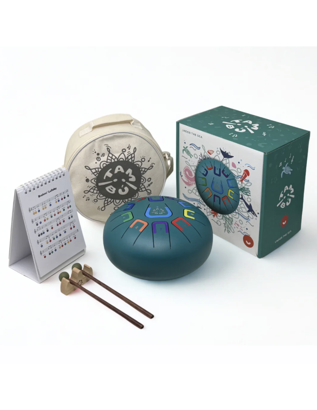 Le Tambù est un Handpan, un instrument de musique très intuitif, comme un tambour en métal. Idéal pour l'éveil de votre enfant et développer sa coordination manuelle.