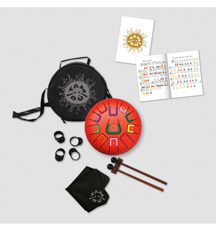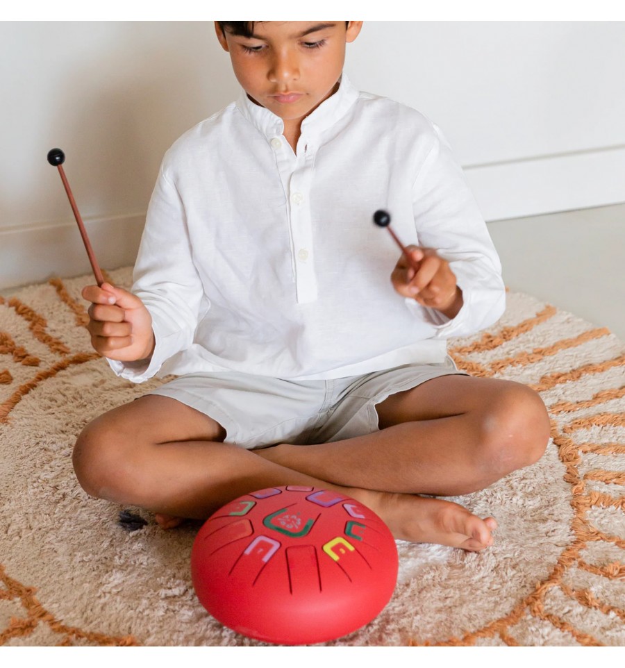 Le Tambù est un Handpan, un instrument de musique très intuitif, comme un tambour en métal. Idéal pour l'éveil de votre enfant et développer sa coordination manuelle.
