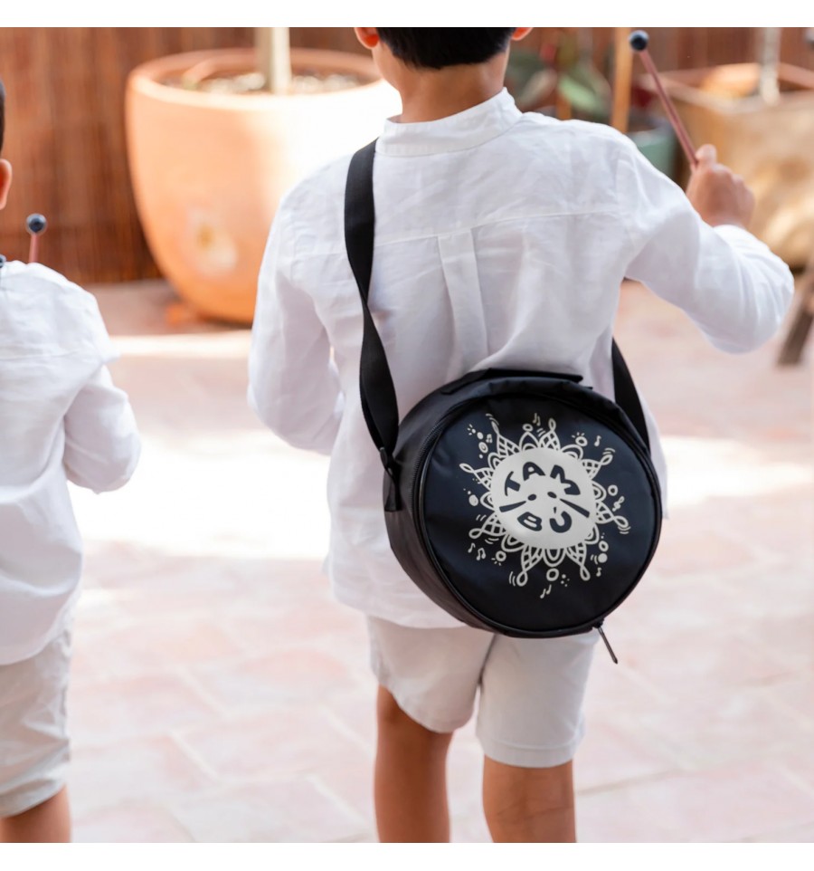 Le tembù est vendu avec deux baguettes, un livret de partitions, un porte-baguettes, des médiators de doigts, un sac renforcé avec une sangle en bandoulière pour le transporter et 1 chiffon de nettoyage.