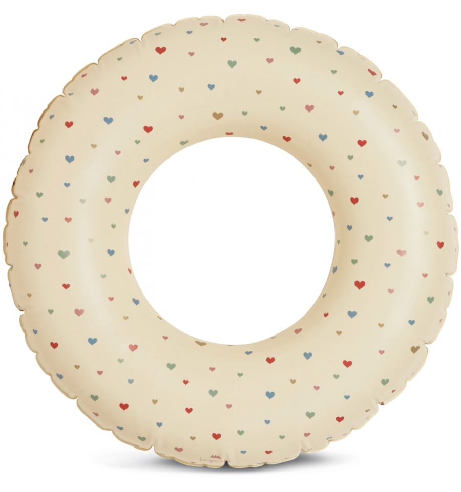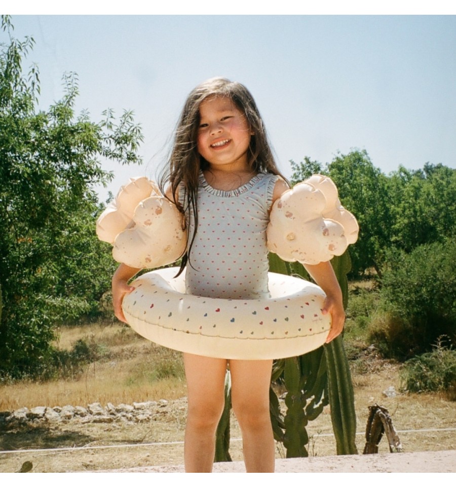 La bouée ronde coeurs Multi Hearts, imaginée par la jolie marque danoise Konges Slojd, se gonfle et se dégonfle facilement, idéale à emporter dans le sac de plage.