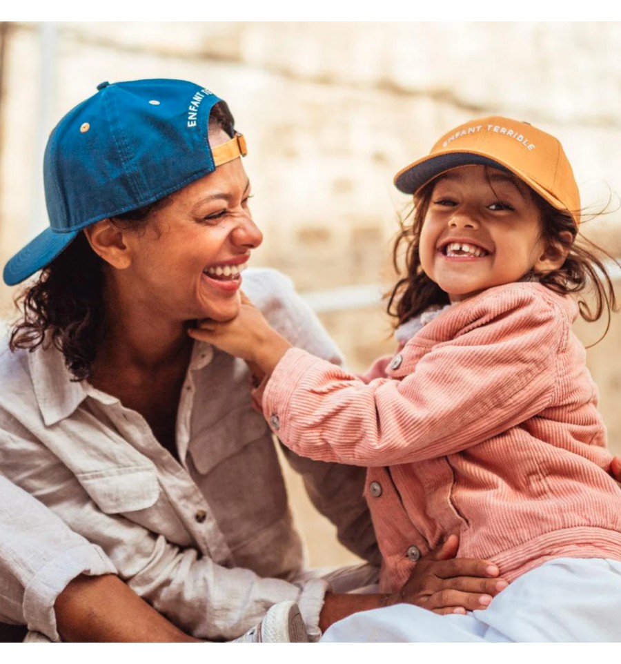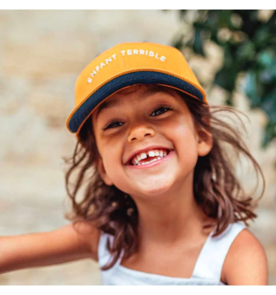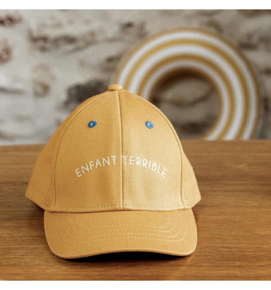 Craquez pour cette casquette enfant ! Vous allez adorer sa couleur moutarde et son inscription "Enfant terrible".