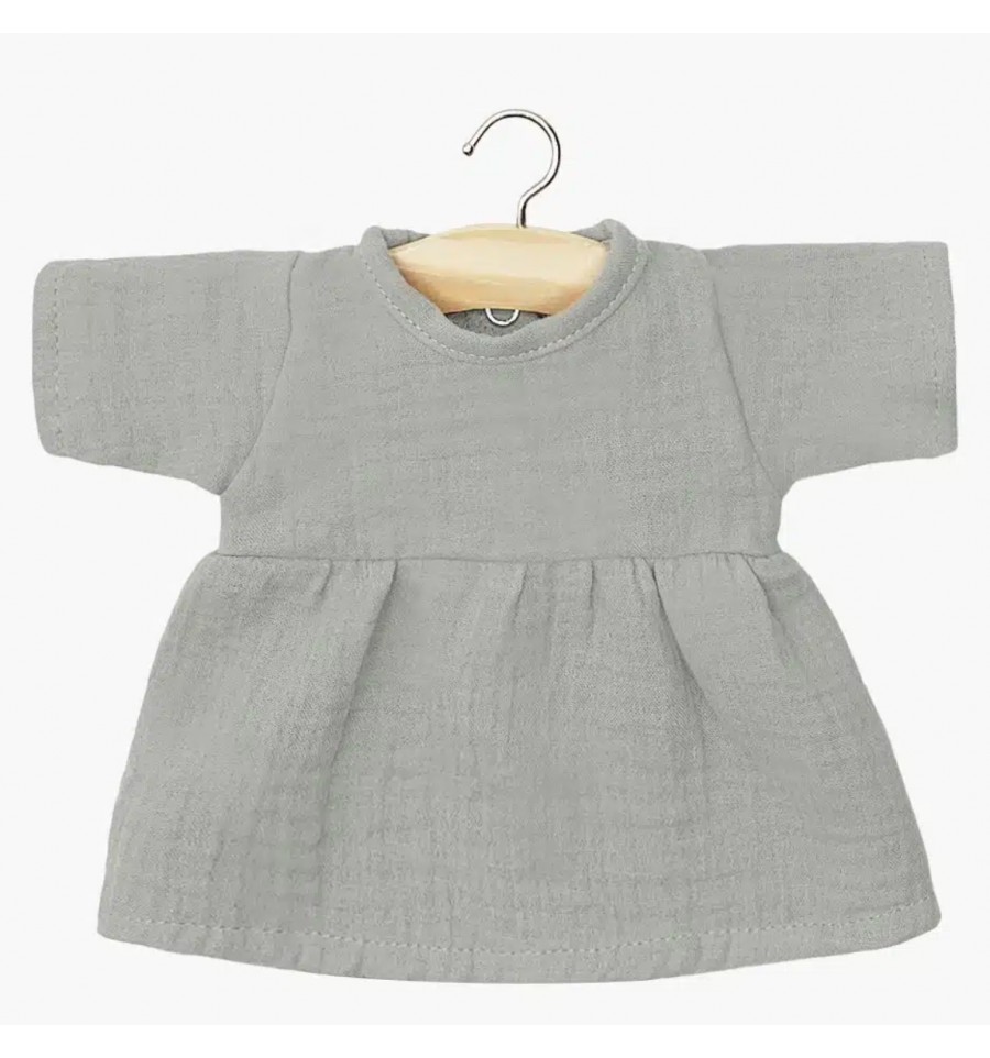 Cette robe "Faustine" en gaze de coton couleur Gris Souris convient aux poupées de 34 cm et 37 cm.