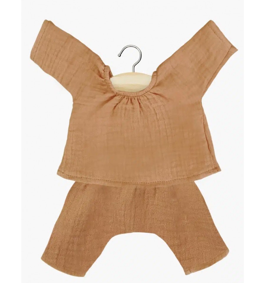 Tout doux en gaze de coton couleur "Cassonade", il est composé d'un pantalon et d'un haut manches longues.