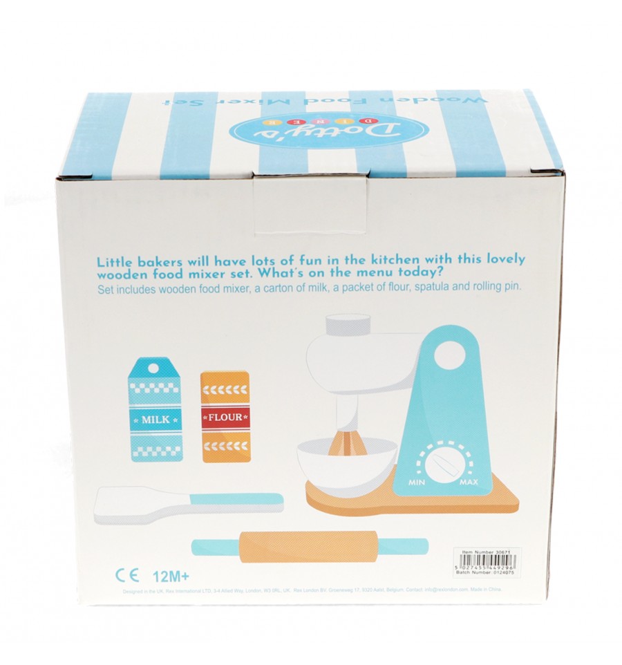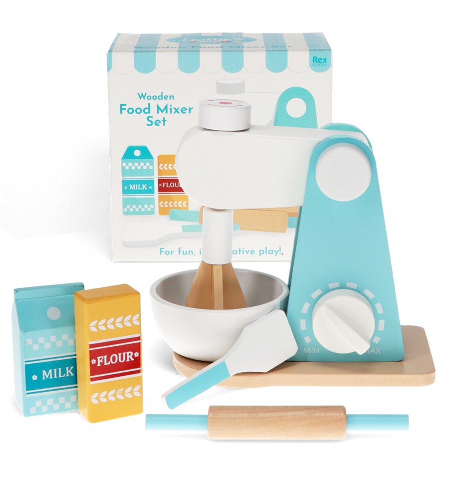 Adorable set de pâtisserie imaginé par Rex London, tout en bois, présenté dans une jolie boite en carton.