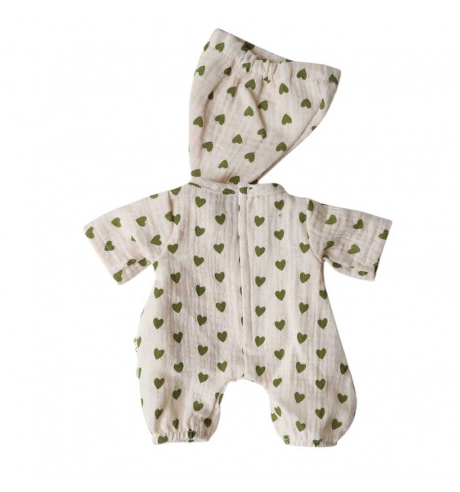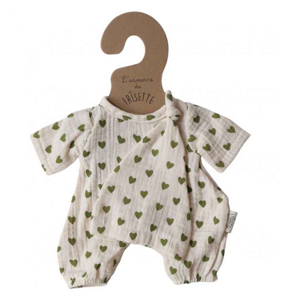 Les poupées de vos enfants vont être tellement mignonnes dans ce joli pyjama en gaze de coton beige avec des coeurs vert : Adorable !!