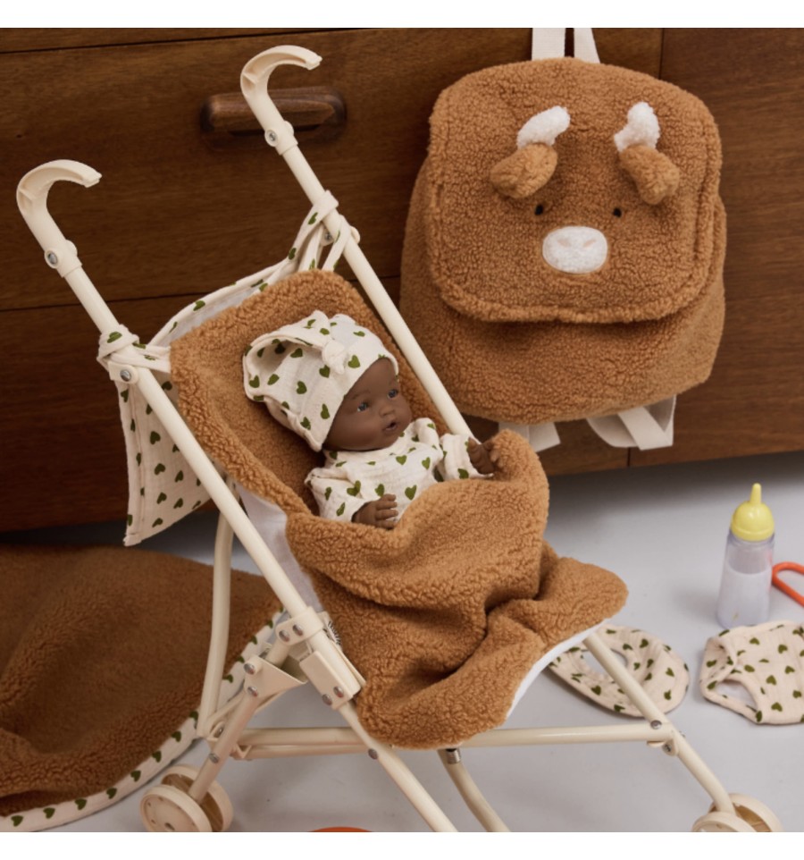 Ce pyjama en gaze de coton pour poupée s'enfile facilement grâce à l'ouverture à l'arrière en scratch, on aime beaucoup le bonnet de nuit qui va venir couvrir la tête de la poupée pour ne pas qu'elle attrape froid.