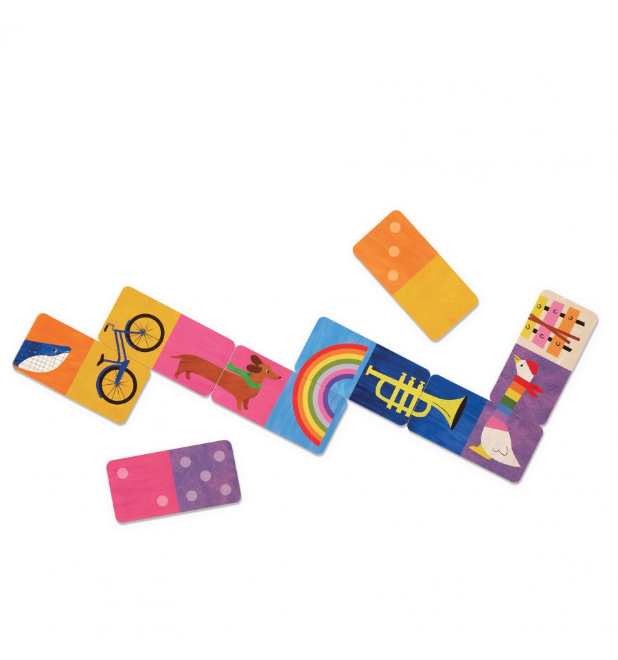 Retrouvez ce jeu classique de dominos avec des illustrations vintage et ultra-colorées.