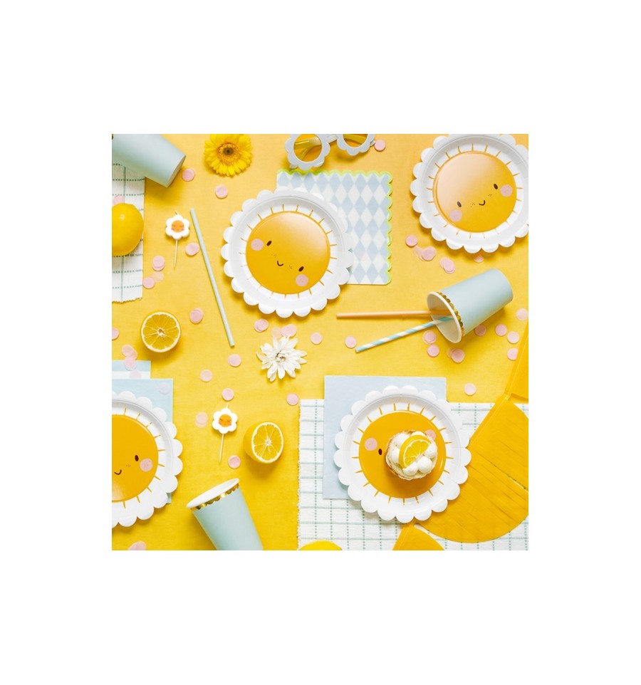 Ces assiettes à la douce couleur jaune soleil égayeront vos déjeuners de fête ou vos goûters d'anniversaire.