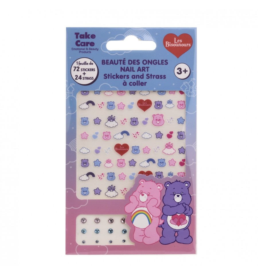 Ces autocollants et strass Bisounours se collent très simplement sur les ongles de vos enfants : les gommettes ne se décollent pas quand on se lave les mains et tiennent 1 à 2 jours minimum.