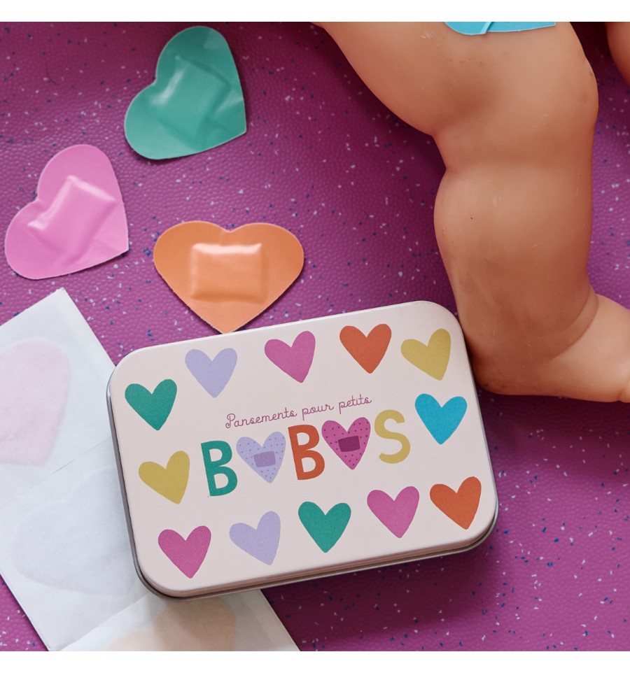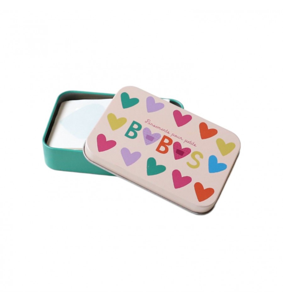 Voici une petite boite parfaite pour soigner avec tendresse et faire disparaitre les petits bobos : le temps que vos enfants choisissent le pansement coeur qui leur plait le plus, les pleurs ont cessé.