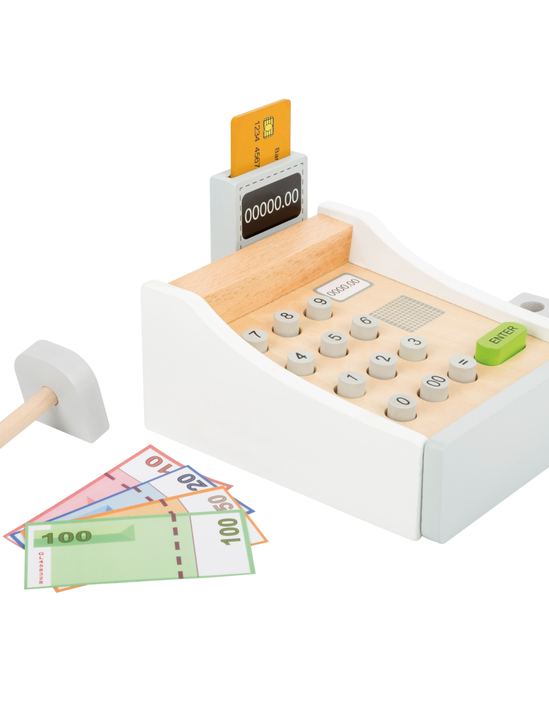 Envie de jouer à la marchande ? Avec cette caisse enregistreuse en bois de la marque Small foot vous pourrez