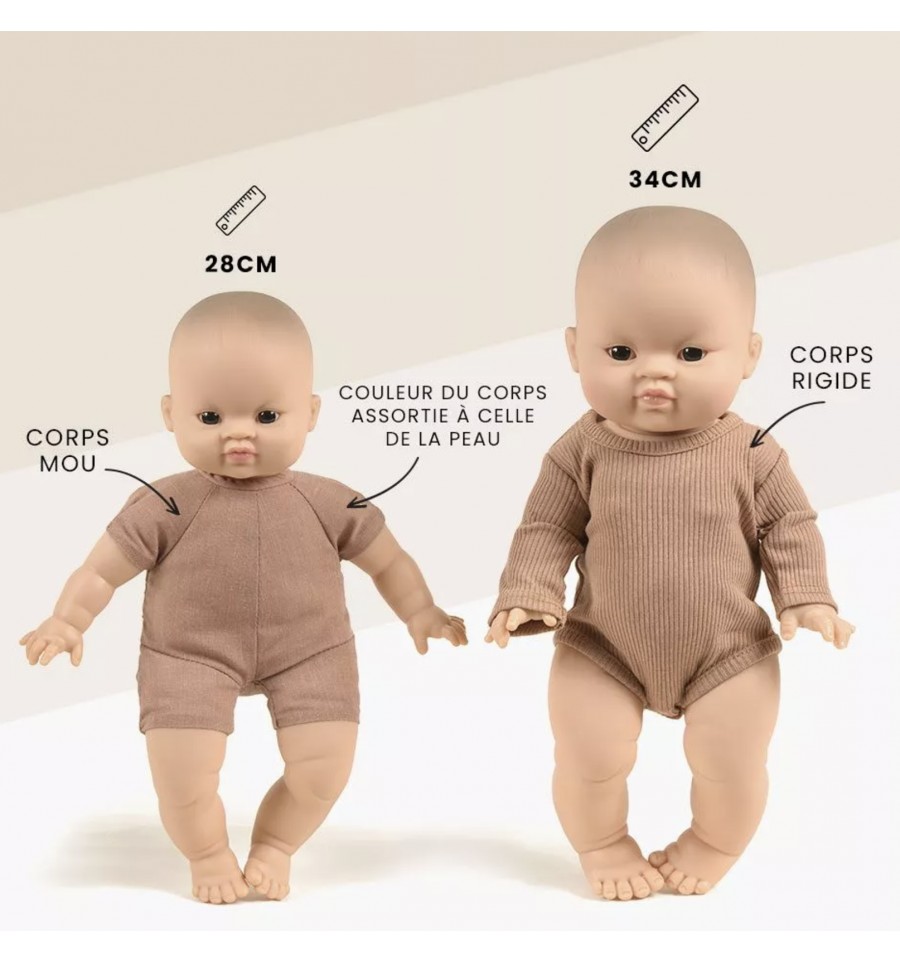 La taille du poupon est parfaitement adaptée aux accessoires Minikane ou ceux que l'on peut trouver dans le commerce (vêtements, accessoires, chaise haute, lit, etc...)