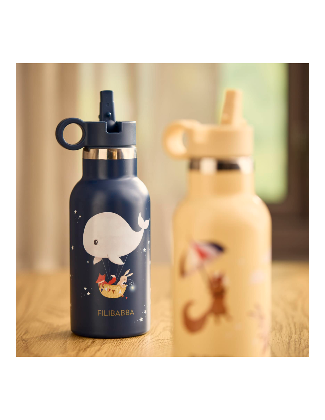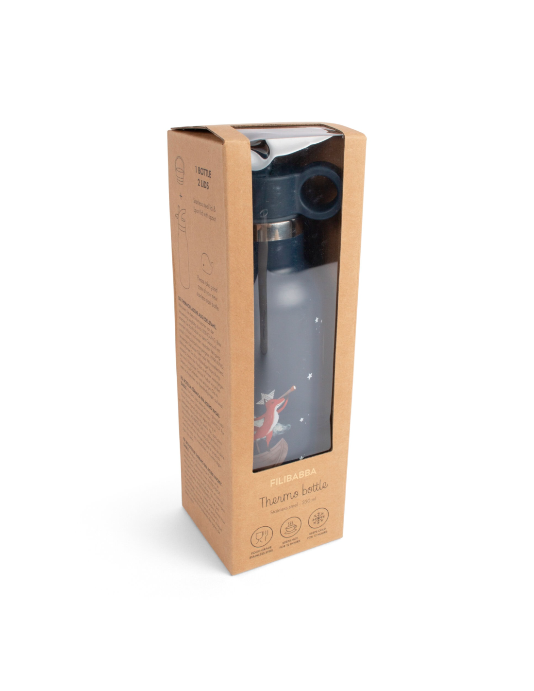 D'une jolie couleur bleu marine avec des illustrations délicates Dreamy Adventurers, cette gourde isotherme (thermos) accompagnera votre enfant où qu'il aille : à l'école, en pique-nique, au camping, etc...