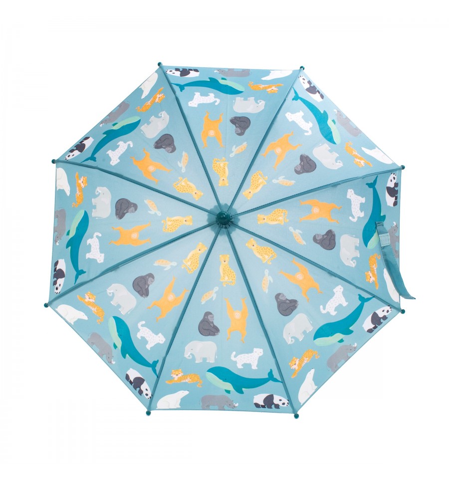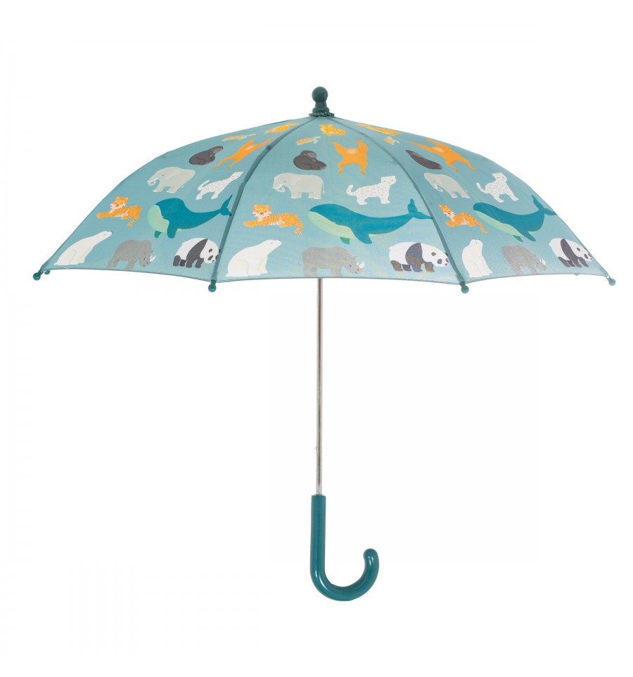 Ce joli parapluie pour enfants est illustré d'animaux en voie de disparition (baleine, panda, etc...).