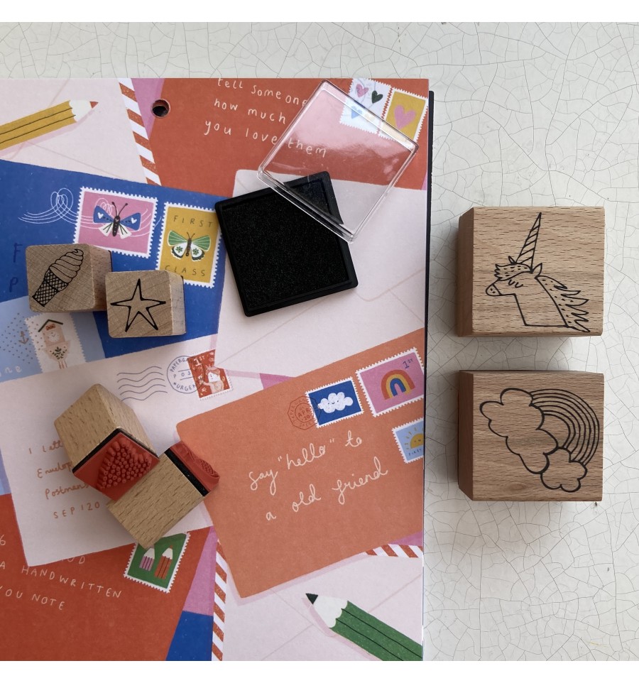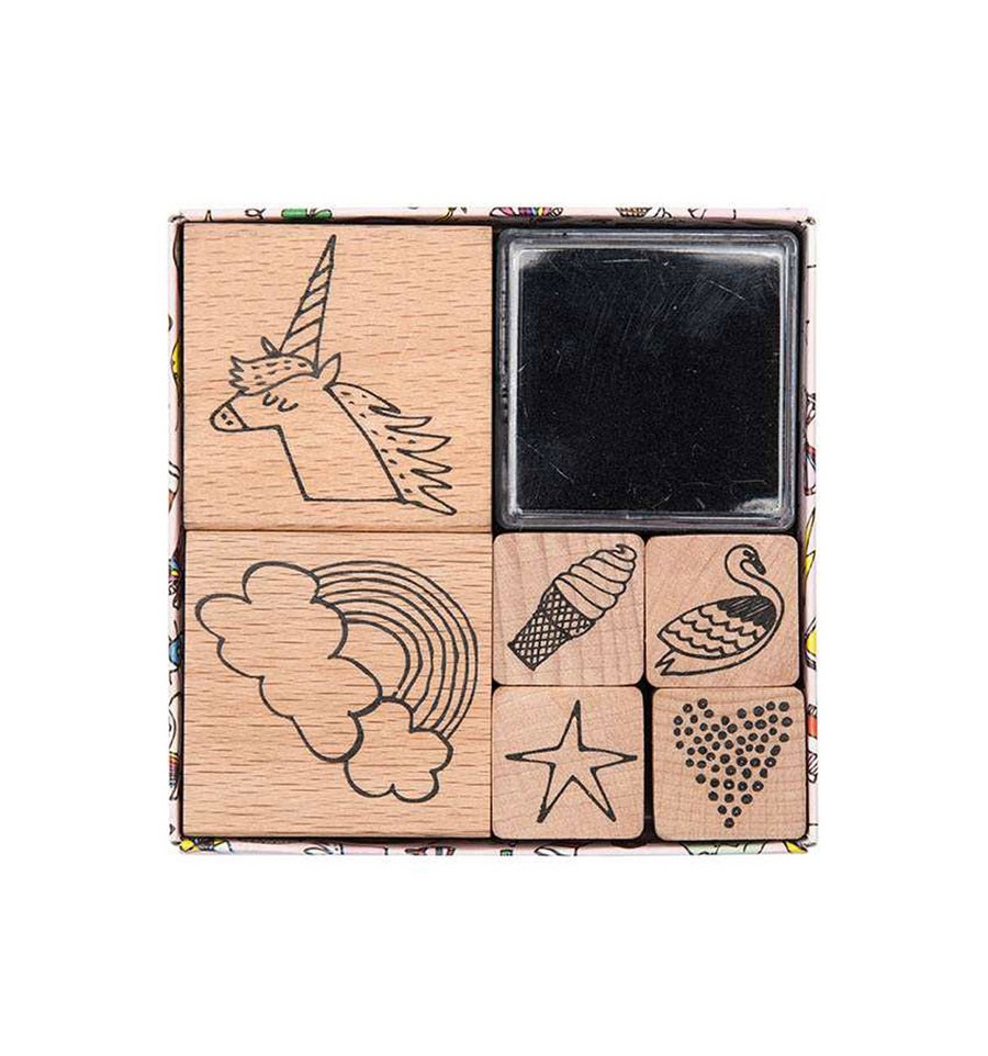 Set de 6 tampons Licorne Arc-en-ciel avec encreur - Rico Design