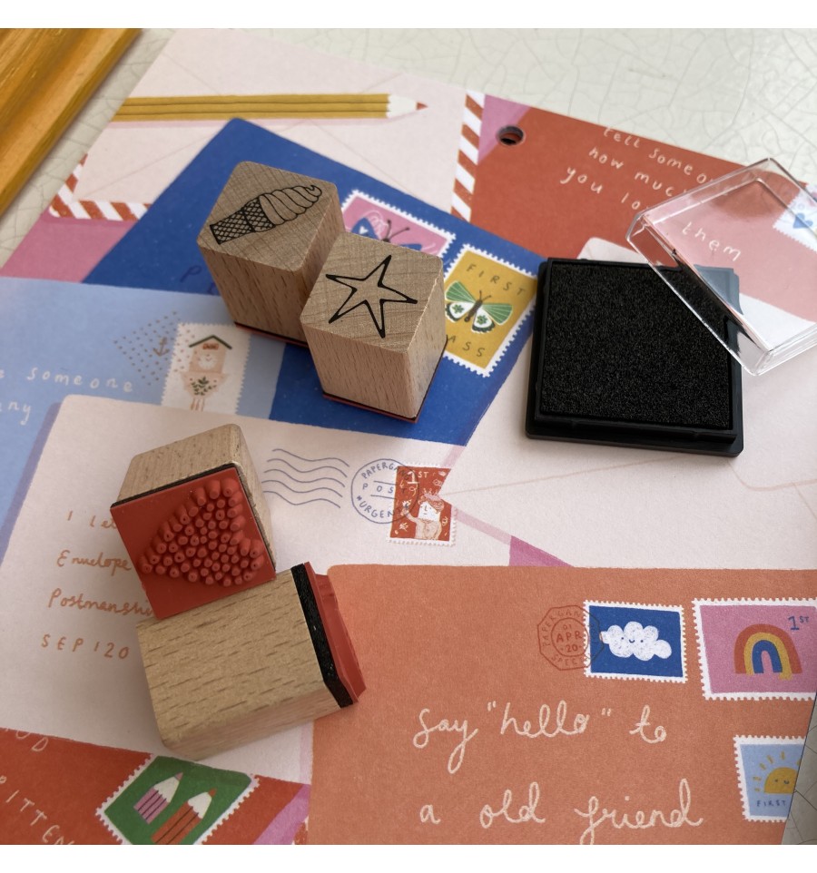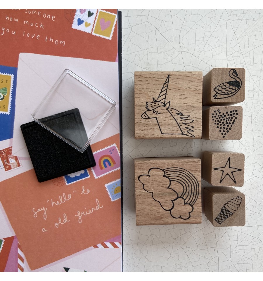 Ce set de 6 tampons en bois et caoutchouc est idéal pour tous vos projets de loisirs créatifs : carterie, scrapbooking, mail art, etc...
