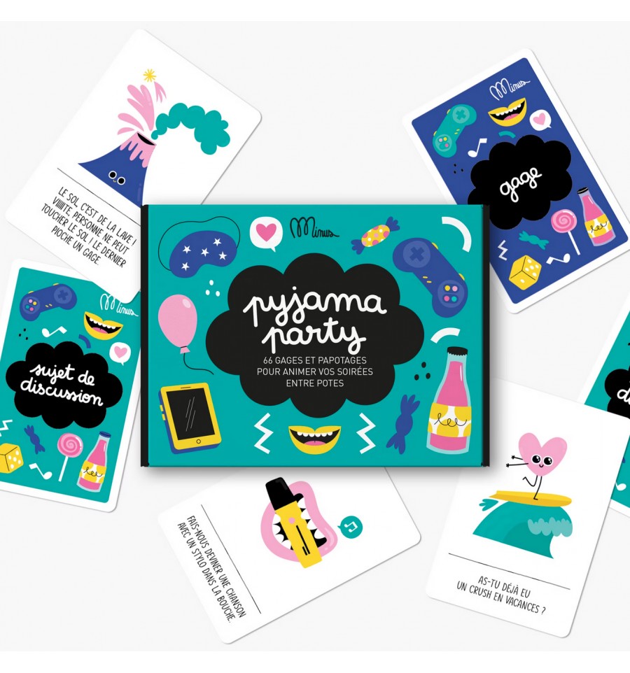 Pyjama Party est un nouveau kit de discussions bien pensé par les éditions Minus pour s'amuser entre amis autour de sujets de discussions drôles et décalés.