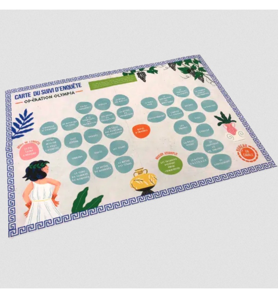 1 maxi poster de la carte d'avancée de l'enquête, pour retracer le chemin parcouru à travers les pages du livre