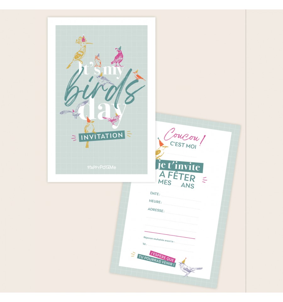 8 invitations "it's my birds day" - Happypotame