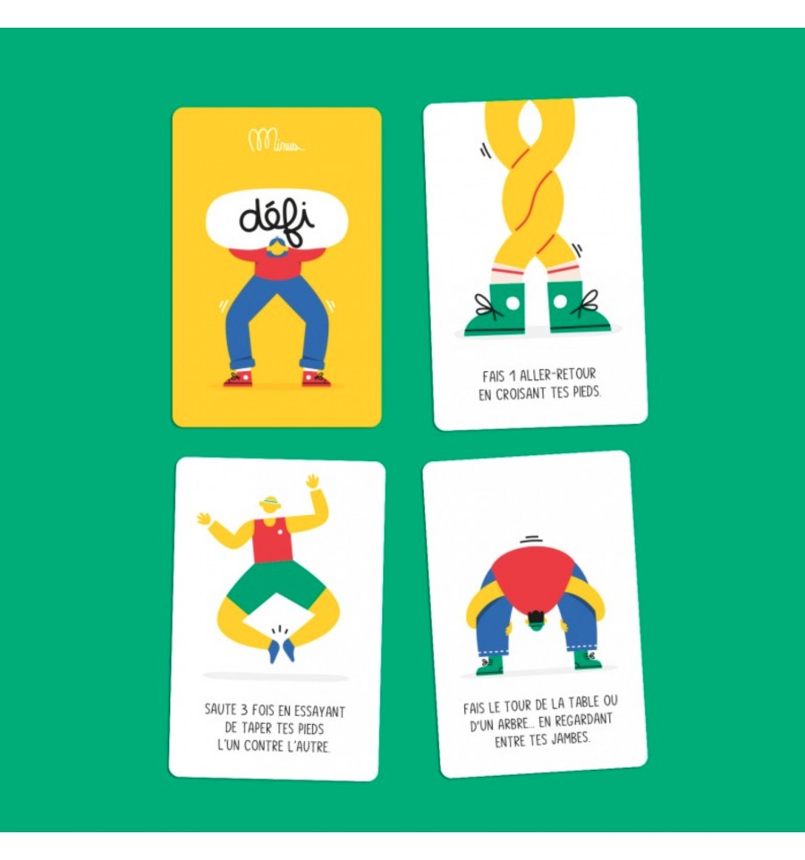 - 50 défis pour bouger : avancer en regardant entre ses jambes, ramper sans les mains ni les pieds, etc...
