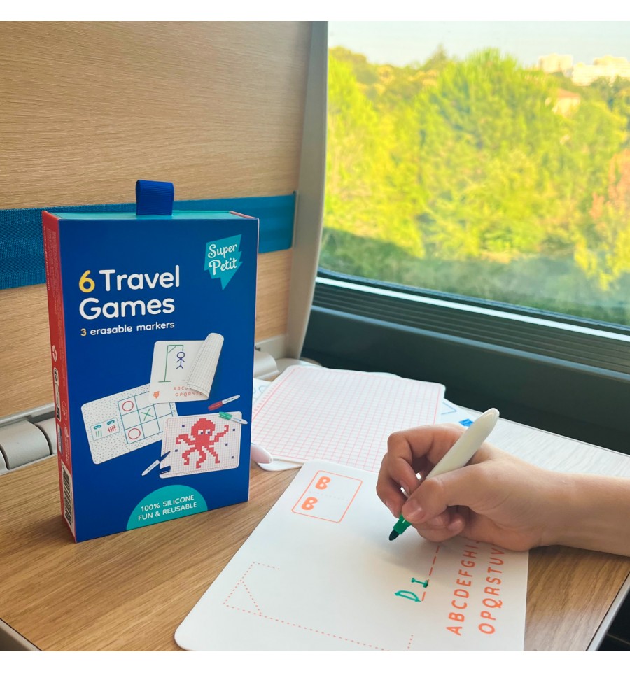 Youpi ! vacances, week-end, escapade en famille, toutes les occasions sont bonnes pour emporter avec vous ce kit de 6 jeux de voyage : Morpion, Pendu, Bataille navale, Puissance 4, Pixel art et Mandala.