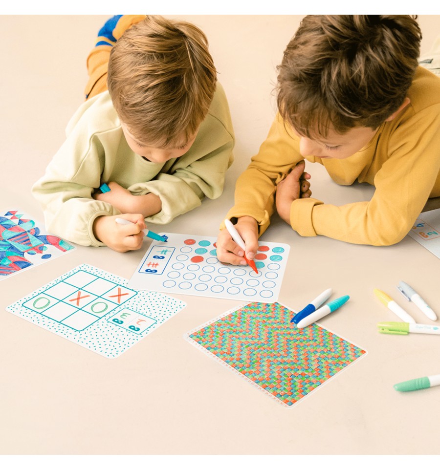 Les feutres sont effaçables et non toxiques, on peut prendre sa revanche plusieurs fois par jour.