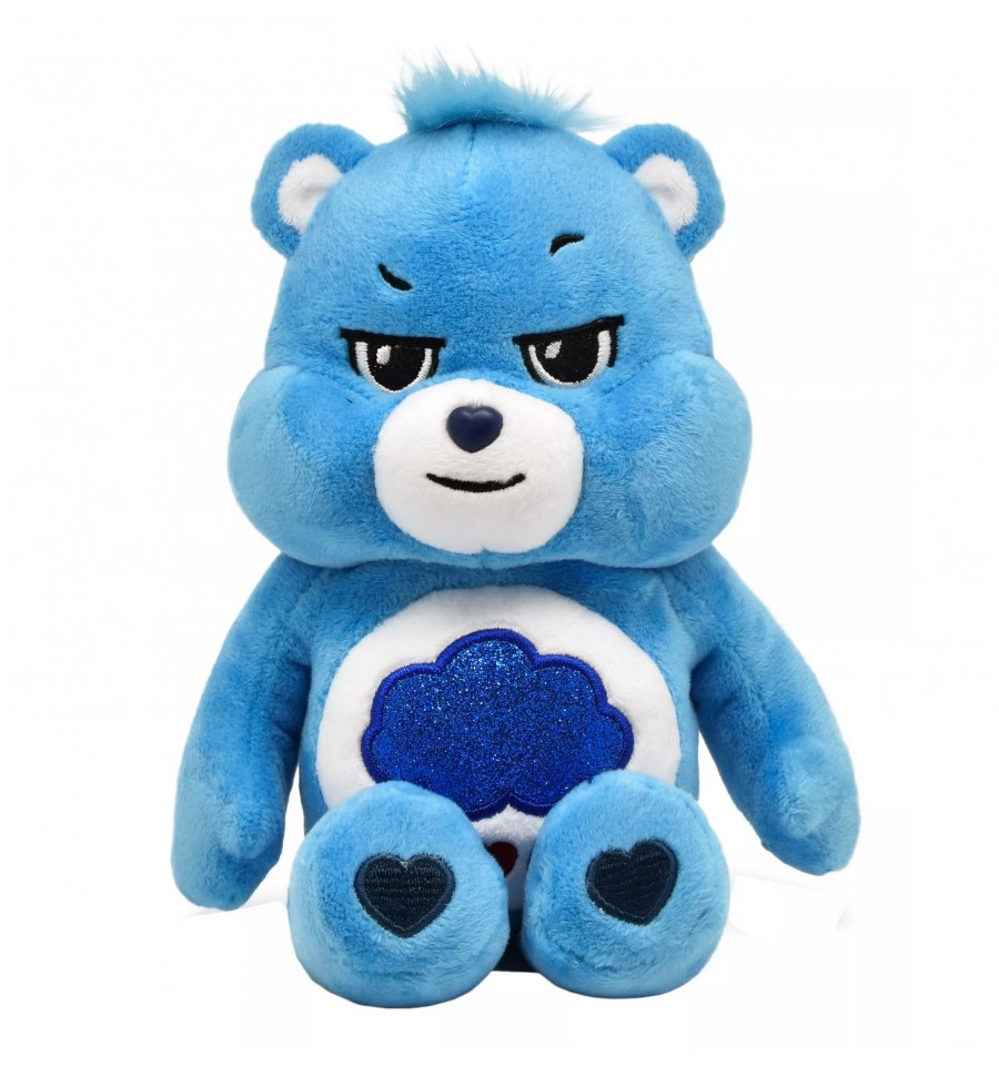 Découvrez ici Touronchon, le Bisounours bleu, avec un nuage à paillettes sur le ventre qui pleut des gouttes et un coeur.