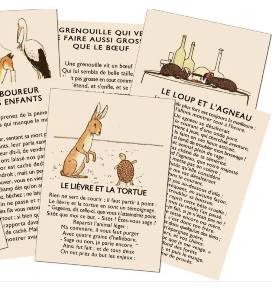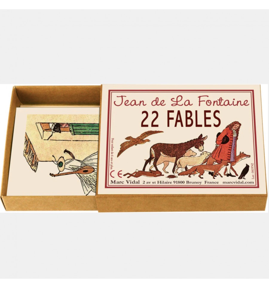 Voici une boîte en carton trop mignonne qui sera un cadeau parfait quelque soit l'âge ! A l'intérieur, retrouvez 22 fables de la Fontaine : La cigale et la fourmi, le corbeau et le renard, le lion et le rat, la poule aux œufs d'or, le vieux chat et la jeune souris, la forêt et le bucheron etc...