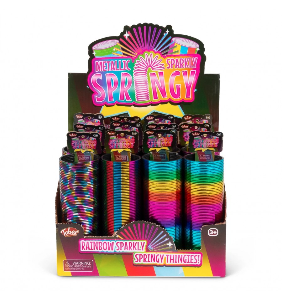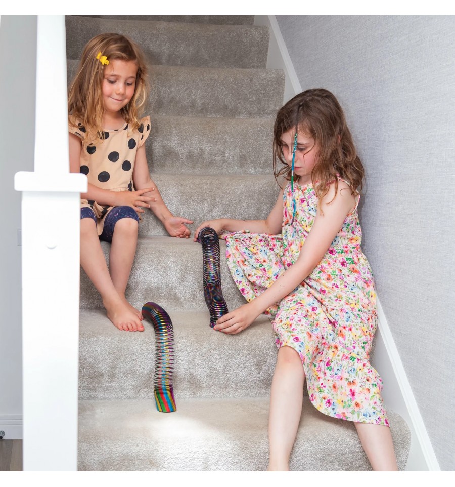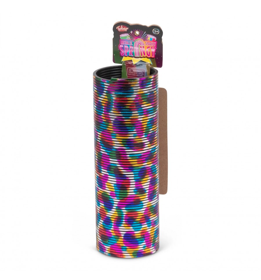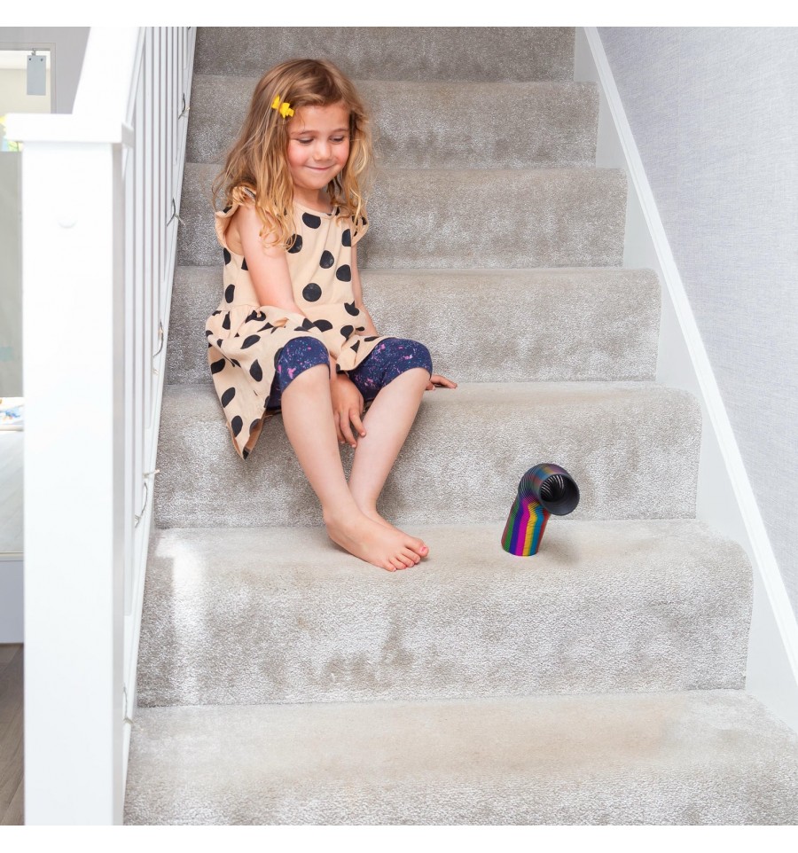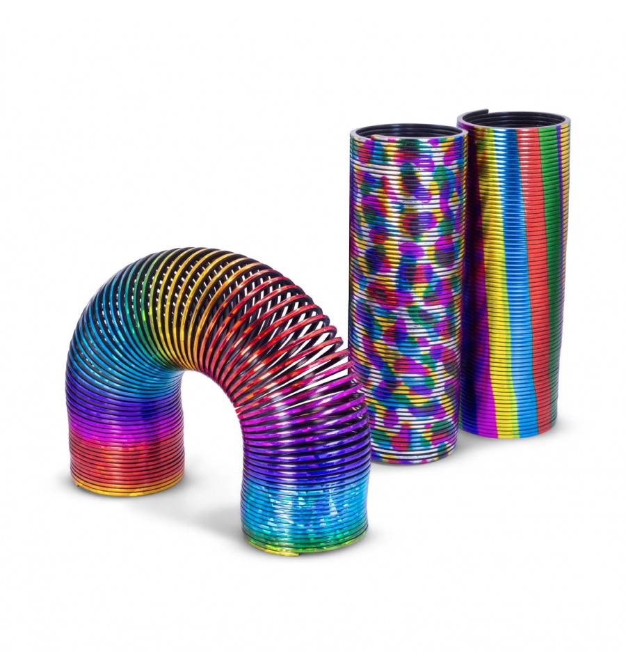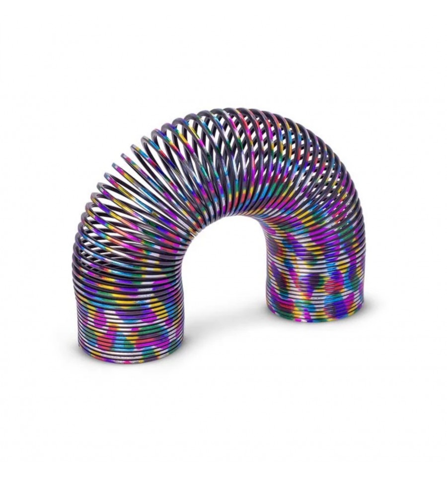 Jouet indémodable par excellence, ce ressort noir avec un effet métallisé est coloré comme un arc-en-ciel.