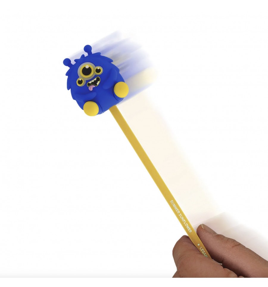 Ce monstre très réaliste, bleu aux yeux jaunes, cache dans son dos un taille crayon ainsi qu'un réservoir : Pratique !
