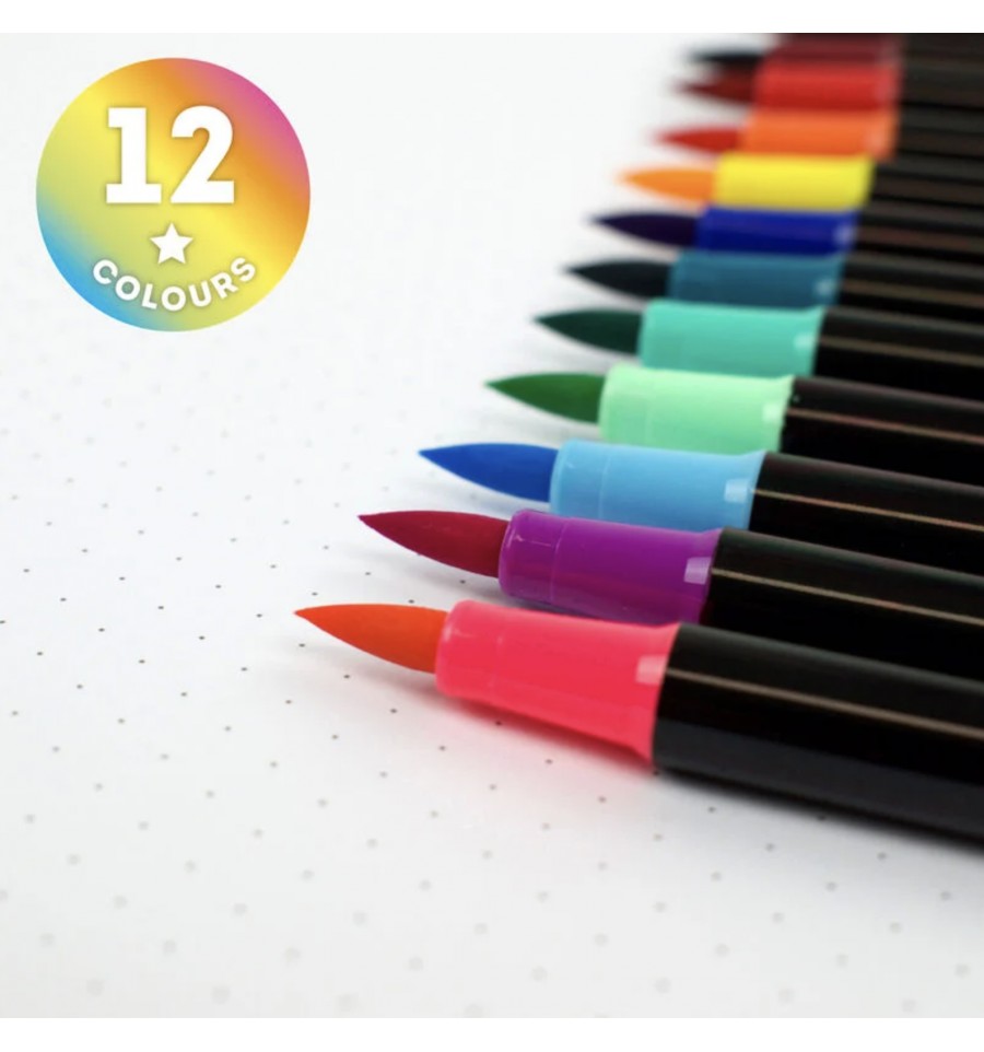 Ultra-pratique, cette boite plate vous permet d'emporter facilement 12 feutres pinceaux aux couleurs vibrantes (Bright Colours).